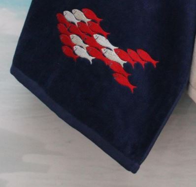 Η νέα πετσέτα θαλάσσης ψαράκια με ένα άκρως εντυπωσιακό κέντημα στο τελείωμα του σε σχήμα ψαριού , θα κλέψει τις εντυπώσεις τις ζεστές μέρες του καλοκαιριού. Η υψηλή ποιότητα βαμβακιού με επεξεργασία βέλουρ στο επάνω μέρος την κάνει υπέρ απορροφητική.